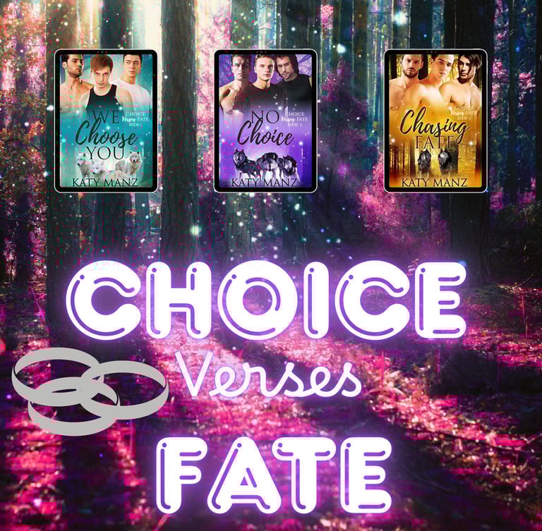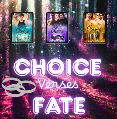 Chasing Fate is the third book in the sweet with knotty heat MM shifter mpreg romance series: Choice Vs. Fate. It features surprising twists to fate, important choices to be made, , true love, babies that steal your heart, just a splash of angst, and a guaranteed happy ever after. Even if they have to chase it.