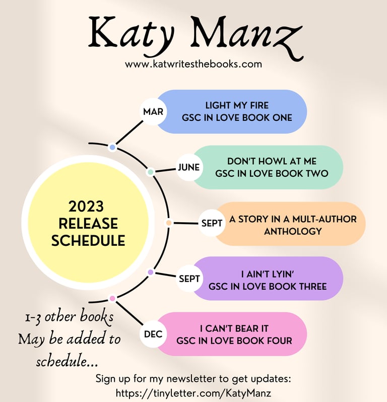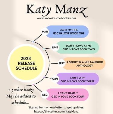 My husband was my biggest cheerleader in life and always told me to just go for it. To publish those stories I created and trust that my readers would find me through them.  Sadly, he left this world before he could see me become a published author under the Katy Manz pen name.  But losing him made me realize that I had to do it. I had to hit publish.  I had to reach for my dreams.  Because life is too short.  You can't wait for a tomorrow.