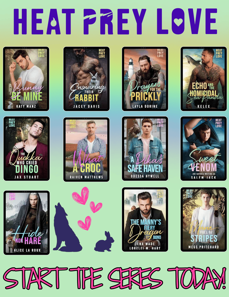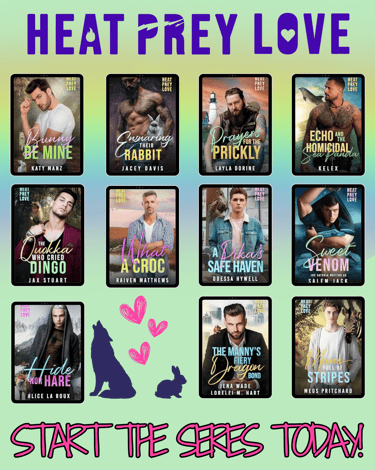 Join us for Heat, Prey, Love, an omegaverse collaboration where prey shifters take center stage with a whole lot of heat and love.